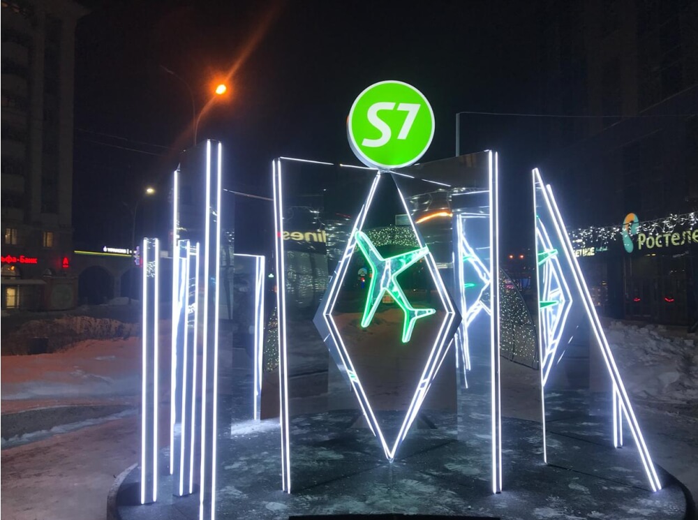 Классический вариант оформления пространства. В основе лежат листовые материалы и металл, а в качестве подсветки используются неон, светодиоды, лампы. Световые фигуры почти всегда являются дополнительным элементом к другим арт-объектам.