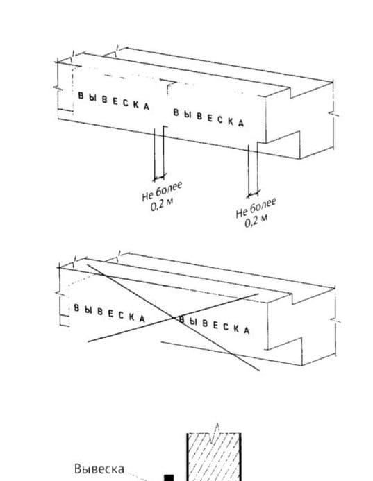 — Вывеска висит на одном уровне с соседними компаниями. Или не выше плиты перекрытия первого и второго этажа.